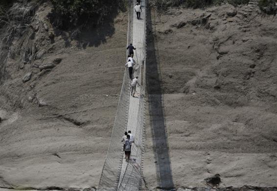 A flash flood caused by an avalanche in the Annapurna mountain range, in Kaski district, Nepal, May 5, 2012. At least 20 people are confirmed to have died and dozens are still missing due to the flood in Pokhara and adjoining villages in Kaski district, according to local media report.